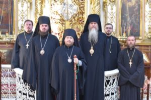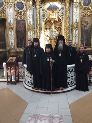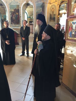 После праздничного богослужения в честь годовщины обретения мощей преподобного Матфея Яранского, епископ Паисий провел экскурсию по кафедральному собору и епархиальному управлению для архипастырей, впервые посетивших Яранскую епархию.