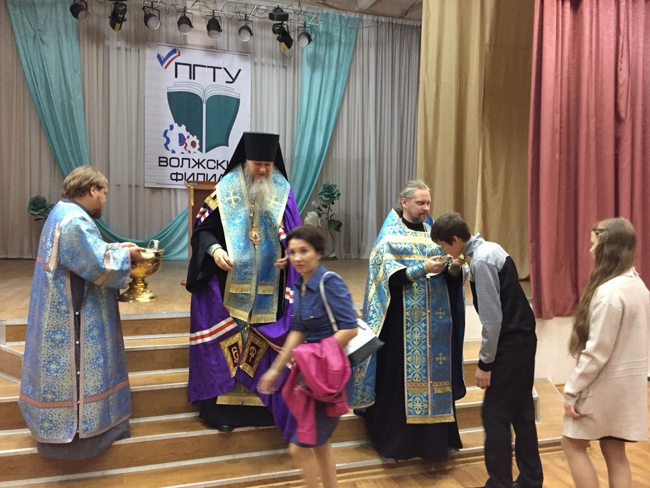 За богослужением молились и.о. директора Виктор Владимирович Сатин, педагоги и студенты Волжского филиала Поволжского технологического университета.