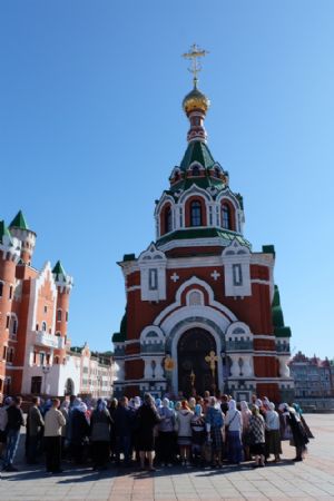 По окончании Богослужения состоялся трезвенный крестный ход, первый проведенный в подобном формате. Крестоходцы прошли по набережной реки Малой Кокшаги до скультуры Богородицы с младенцем Христом, затем через Театральный мост направились в Заречную часть города к часовне святым благоверным князю Петру и княгине Февронии Муромским.