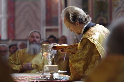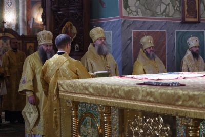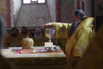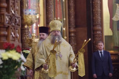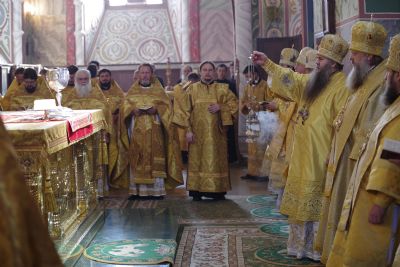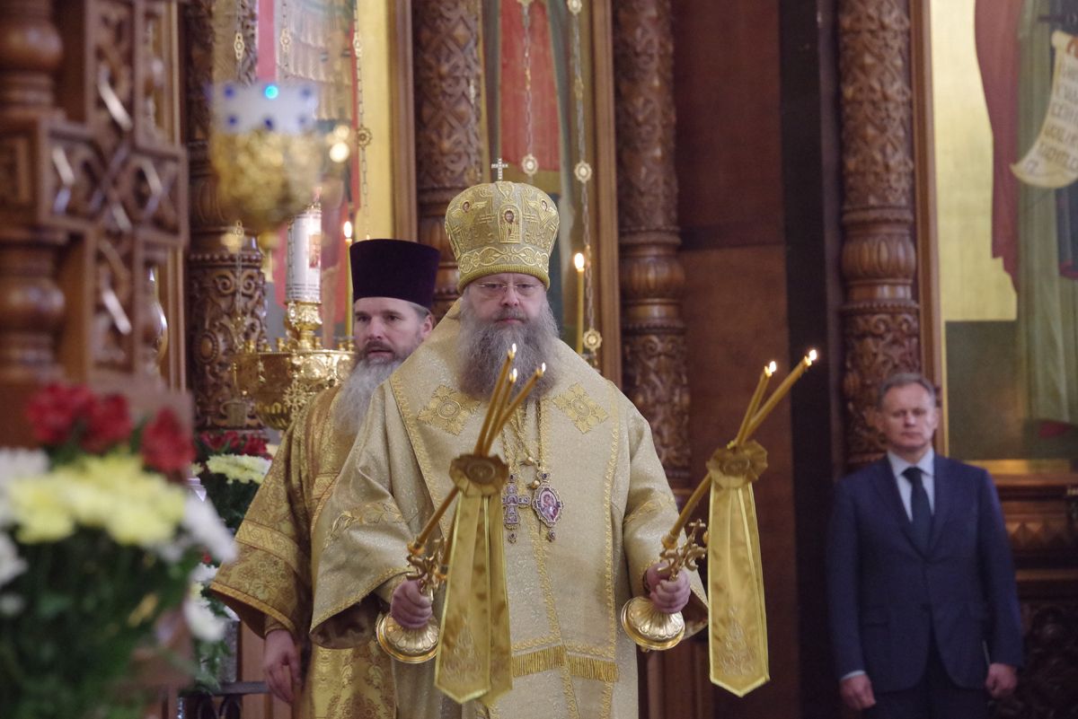 На литургии присутствовали исполняющий обязанности заместителя губернатора Нижегородской области Сергей Шевченко, ответственный секретарь межфракционной депутатской группы Государственной думы по защите христианских ценностей Олег Ефимов, сотрудники Синодального отдела религиозного образования и катехизации.