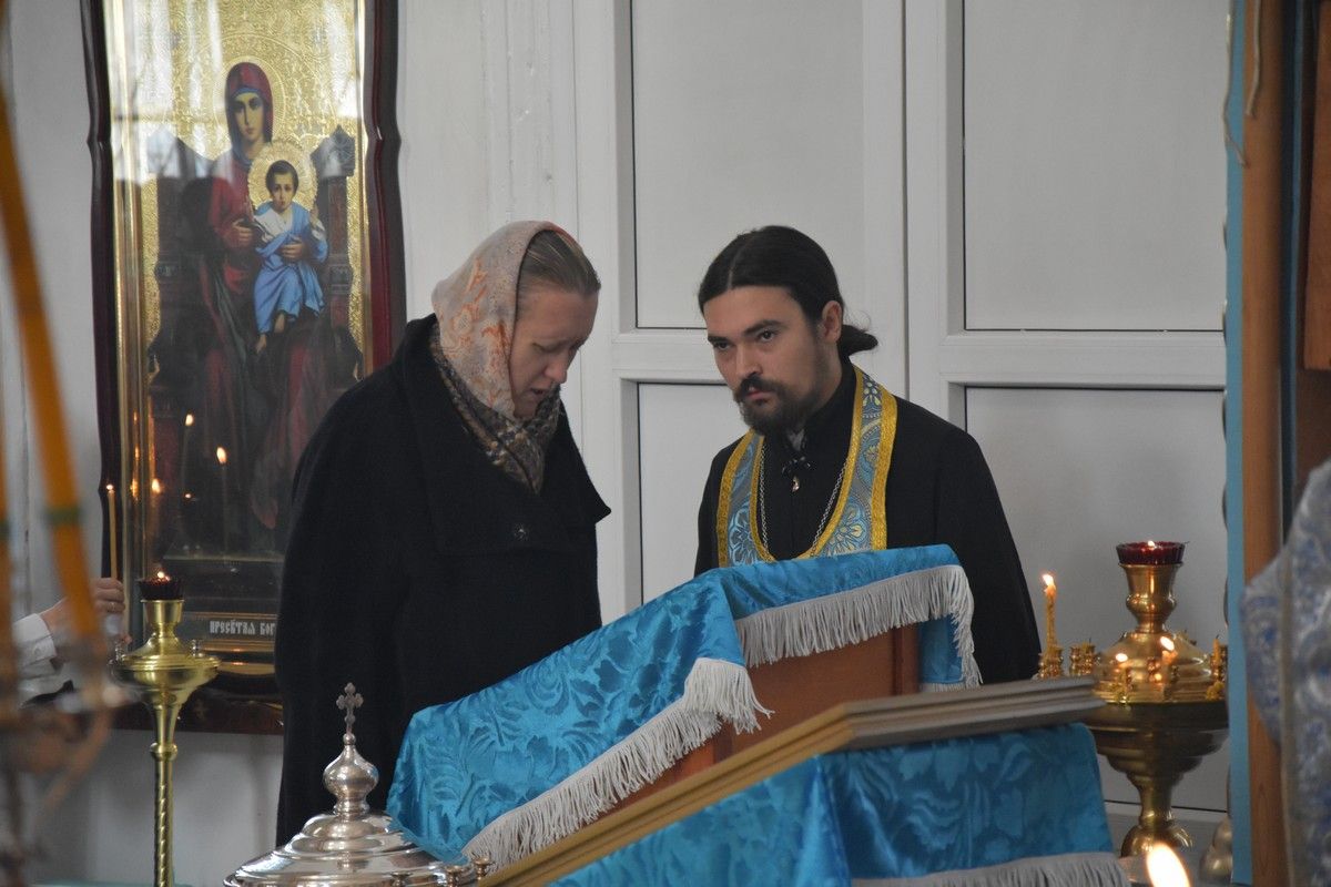 Владыке сослужили настоятель храма протоиерей Валентин Пылаев и клирик храма Рождества Пресвятой Богородицы села Семеновка протодиакон Михаил Козловский.