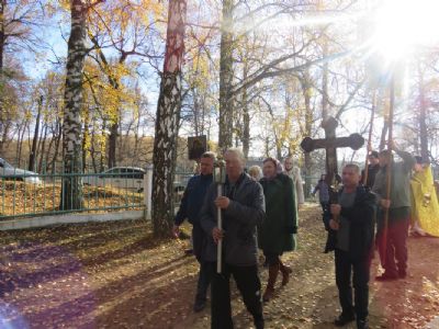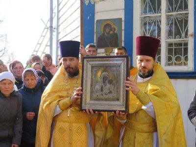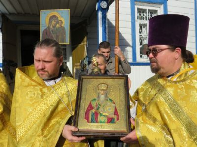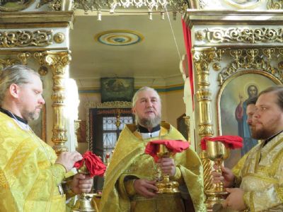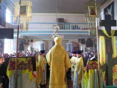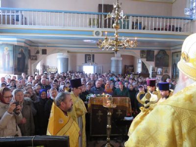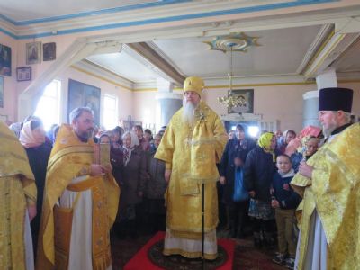 Епископ Феофан совершил здесь Божественную литургию, а также молебен с крестным ходом вокруг храма. Его Преосвященству сослужили: благочинный Волжского церковного округа, настоятель храма святителя Гурия села Петъял протоиерей Виталий Михеев, настоятель храма Богоявления Господня п. Морки протоиерей Леонтий Очетов, настоятель храма Пресвятой Троицы села Помары иерей Сергий Петров, настоятель храма Пресвятой Троицы с. Сотнур иерей Игорь Сапаев, клирики Никольского кафедрального собора города Волжска иерей Алексий Скрябин, иерей Сергий Першаков, диакон Иоанн Захаров.