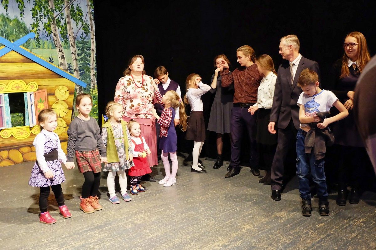 Затем для детей и родителей артисты театра провели мастер-классы по подготовке совместного спектакля. И это подготовленное детьми и родителями представление тут же было показано на сцене малого зала театра.