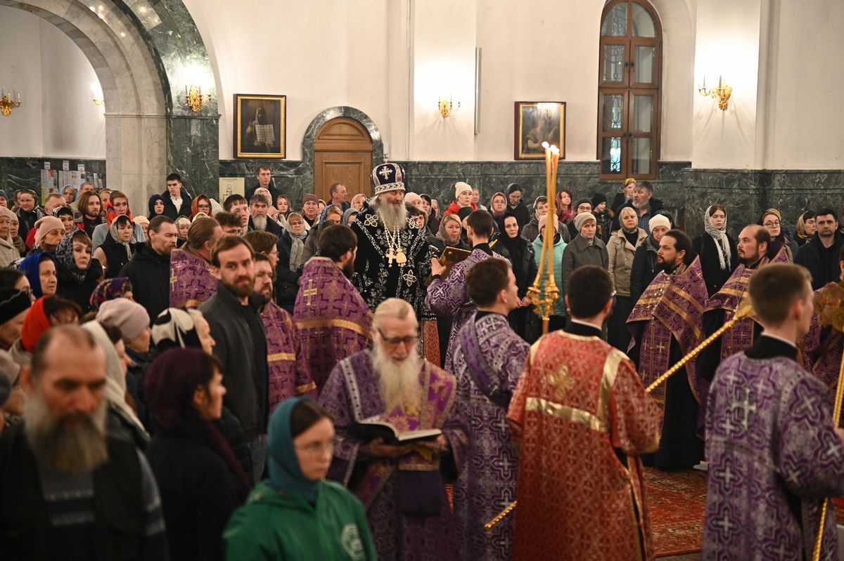 Владыке сослужили клирик Успенского храма г. Йошкар-Олы иерей Алексий Михеев и клирик храма Рождества Пресвятой Богородицы с. Семеновка протодиакон Михаил Козловский. Песнопения и акафист исполняли священнослужители и прихожане.