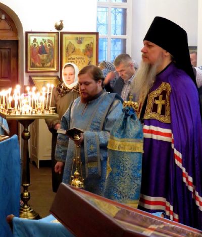 Богослужения совершались в сослужении: секретаря Епархиального управления, настоятеля храма протоиерея Александра Михайлова; духовника епархии, настоятеля храма святого праведного Иоанна Кронштадтского города Волжска протоиерея Евгения Панина; настоятеля храма Богоявления Господня поселка Морки Леонтия Очетова; настоятеля храма преподобномученика Андрея Критского села Елембаево Сергия Бажанова, настоятеля храма Пресвятой Троицы села Помары иерея Сергия Петрова, клириков Никольского кафедрального собора города Волжска иерея Сергия Першакова и диакона Иоанна Захарова.