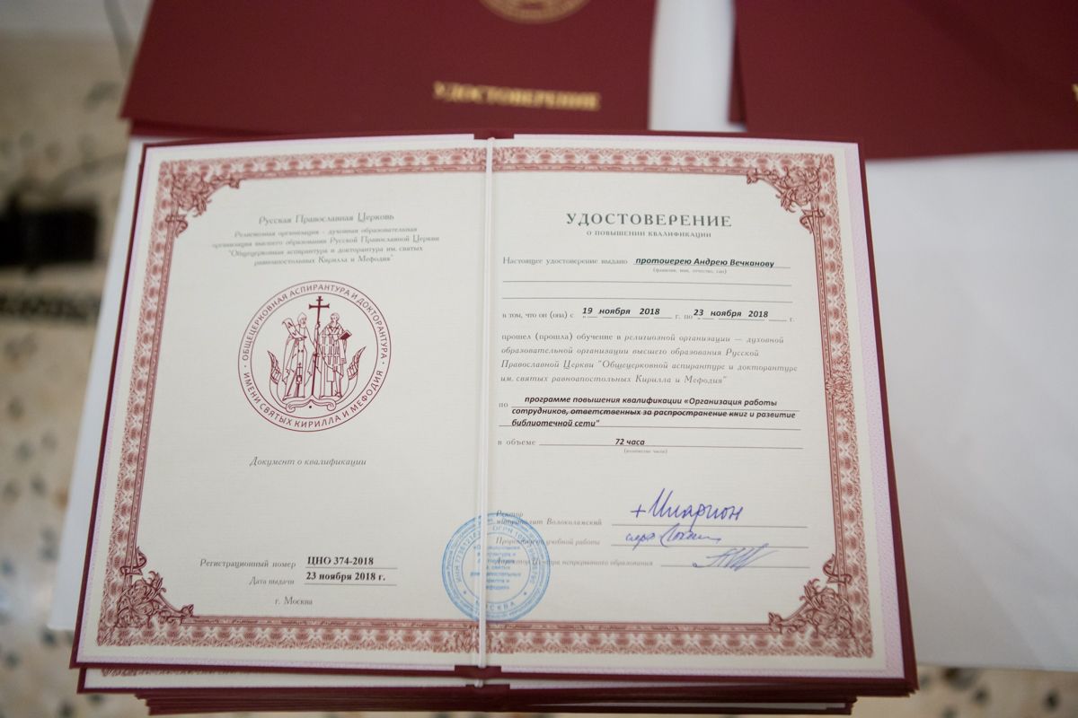 19-23 ноября 2018 года Общецерковной аспирантурой и докторантурой им. святых равноапостольных Кирилла и Мефодия совместно с Издательским советом Русской Православной Церкви был проведен семинар для сотрудников, ответственных за распространение книг и развитие библиотечной сети в епархиях.