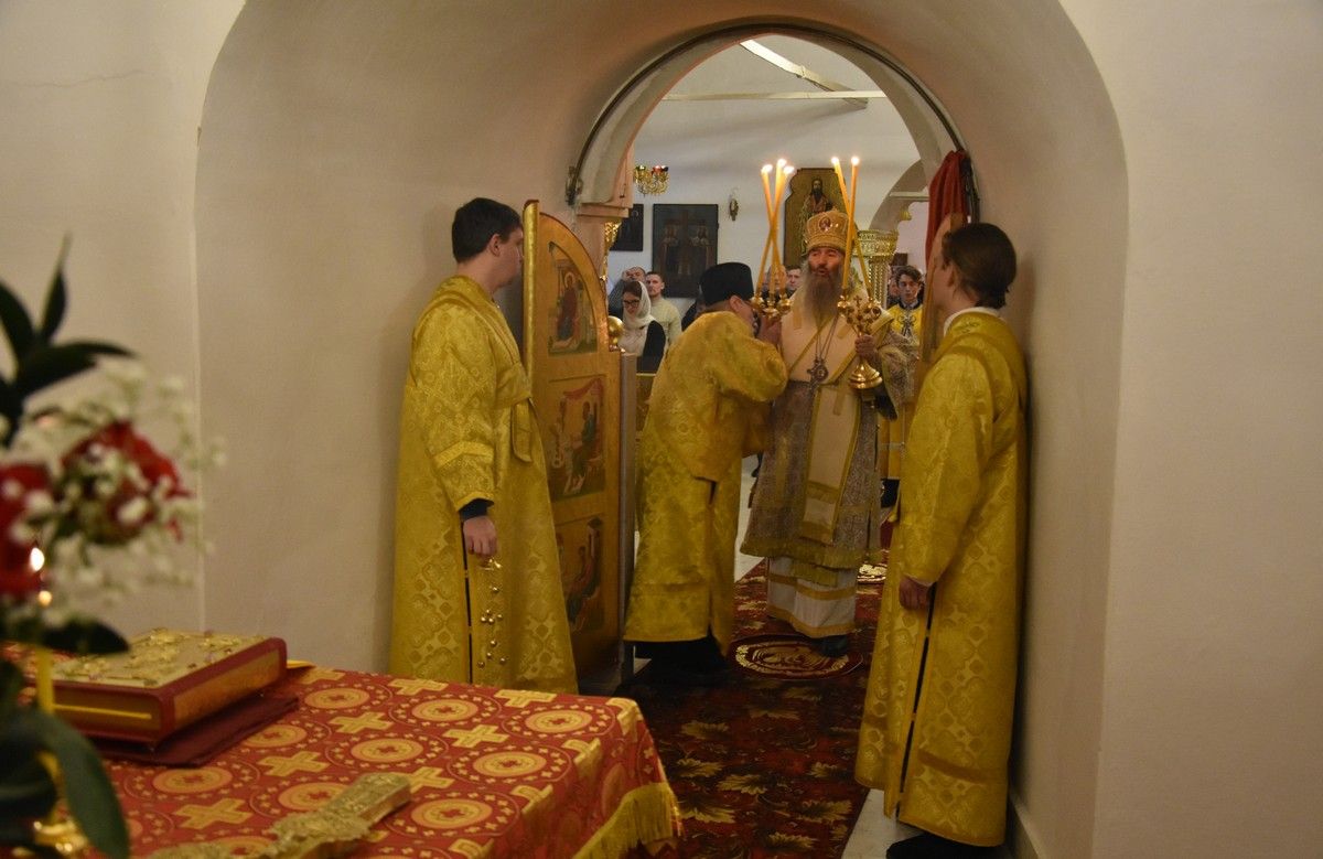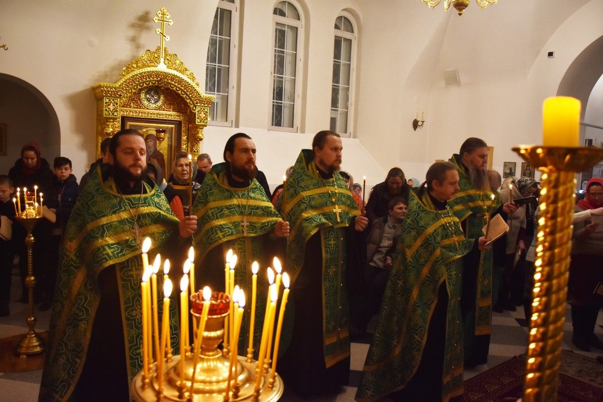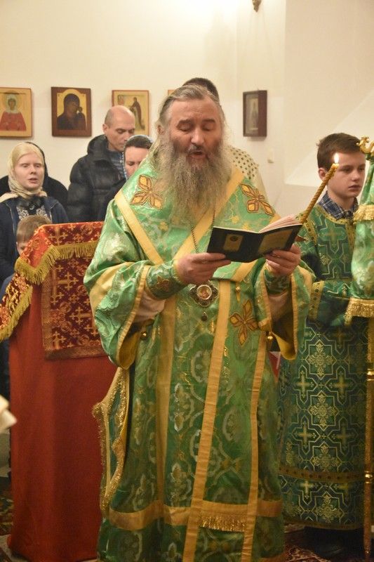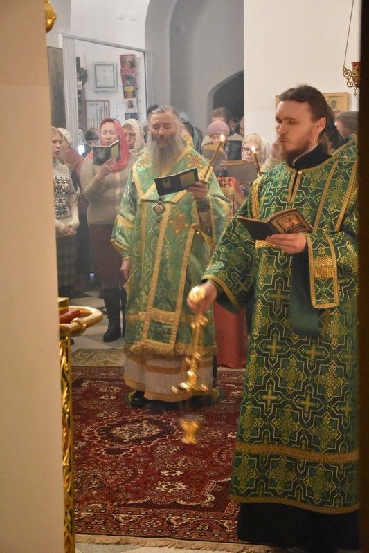 23 декабря митрополит Иоанн возглавил Божественную литургию в Троицком храме г. Йошкар-Ола. Владыке сослужили клирик Вознесенского собора иерей Александр Деревяшкин и клирик храма Рождества Пресвятой Богородицы с. Семеновка протодиакон Михаил Козловский. Песнопения исполняли два хора под руководством регентов Елены Ивановой и Ларисы Садовиной.
