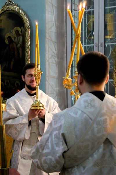Этот день называют Рождественским сочельником. В своей проповеди владыка напомнил о церковной традиции проводить сочельник в преддверии праздника Рождества Христова, выразив надежду увидеть всех после полуночи на Божественной литургии: «Кто-то придёт просто поделиться с Церковью своей радостью, кто-то придёт и причаститься Святых Христовых Таин, чтобы соединиться с Самим Господом нашим Иисусом Христом. Желаю с удивительной радостью встретить праздник Рождества Христова и чтобы эта радость всегда пребывала в наших сердцах, освещая всю нашу жизнь, помогая нам переносить скорби, трудности этой жизни временной и устремляться к вечной радости, которая уже никогда не померкнет в наших сердцах».