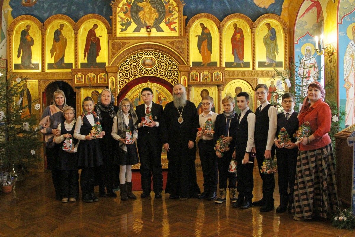 Дети и взрослые делились своей радостью о Рождшемся Богомладенце с Владыкой: пели рождественские песнопения, колядки, песни и читали стихи. А Владыка каждого гостя одарил сладким подарком.
