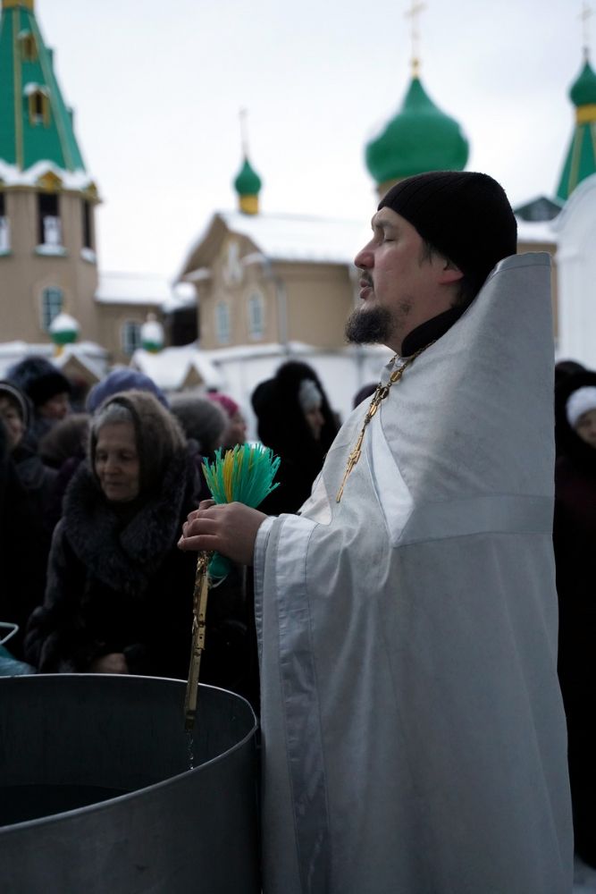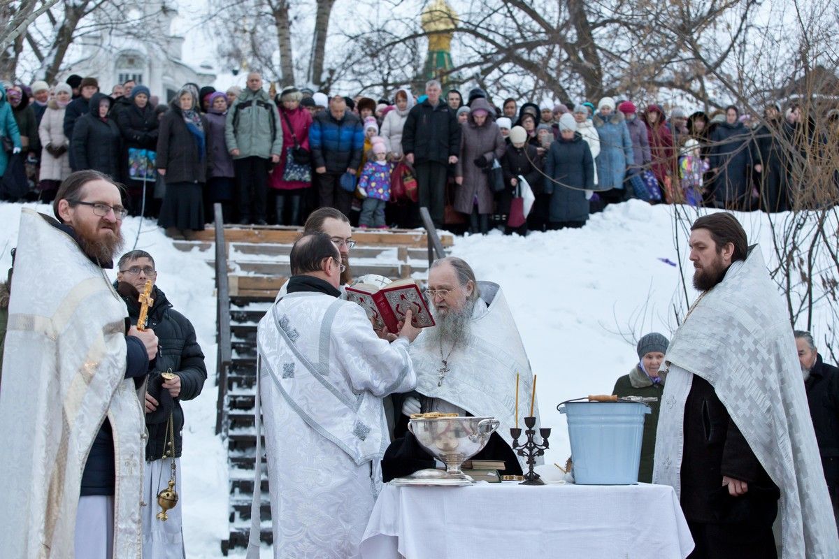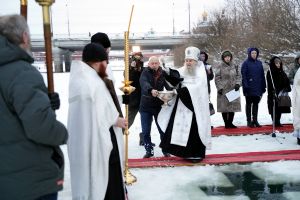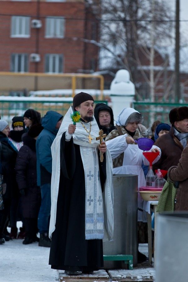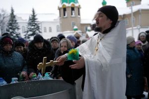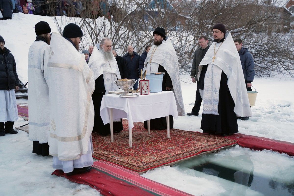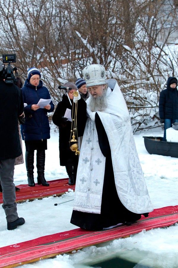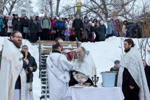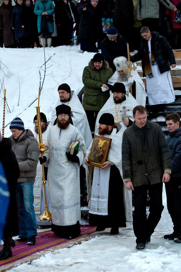 Праздник начался с ранней Литургии, продолжился крестным ходом и освящением «Иордани». Чин Великого освящения воды совершил настоятель Вознесенского собора г. Йошкар-Ола протоиерей Евгений Кутырев. Для многих это был очень волнительный и торжественный момент.