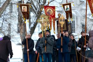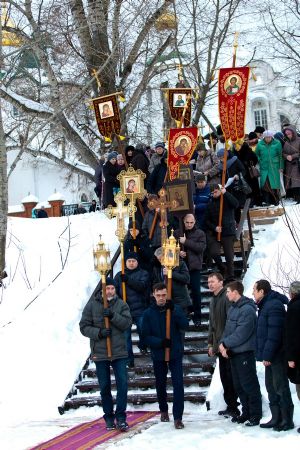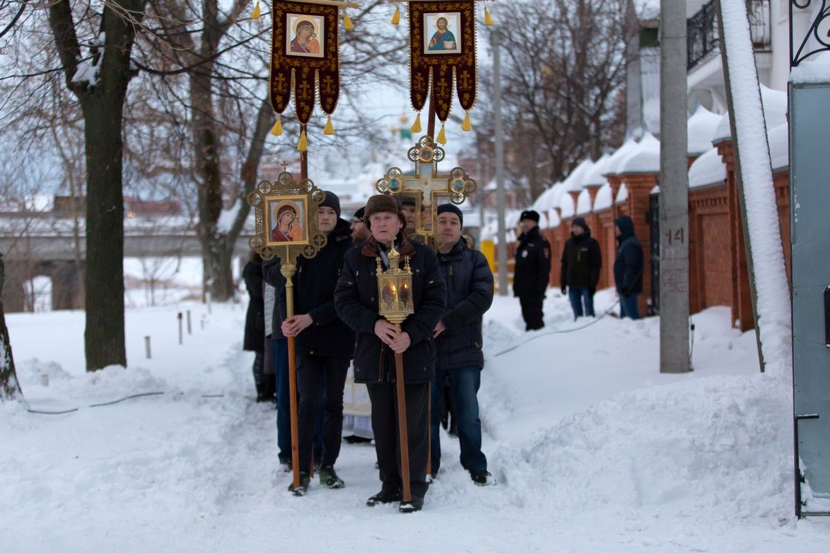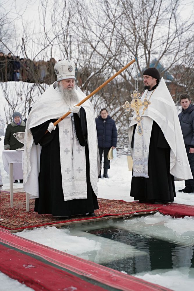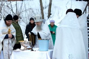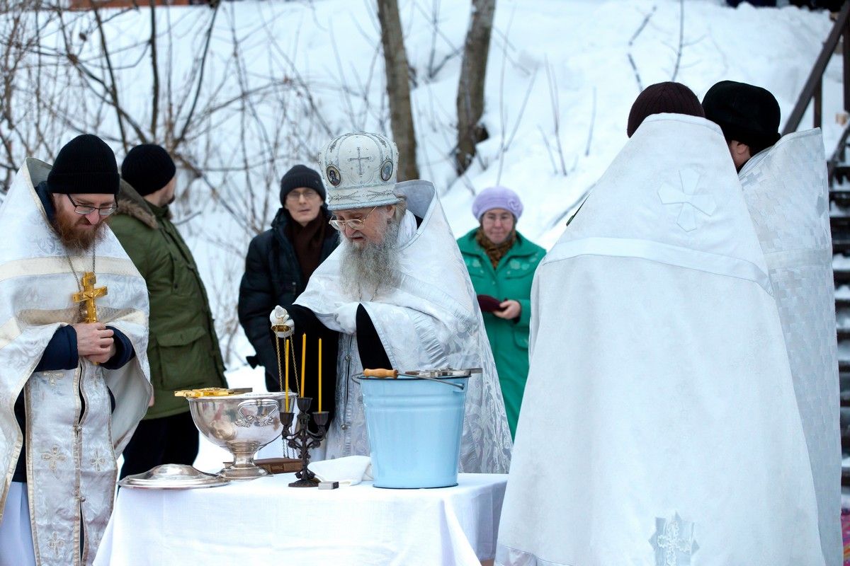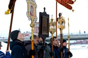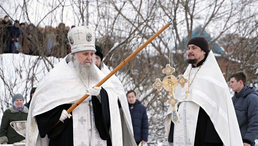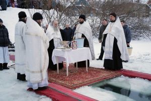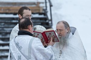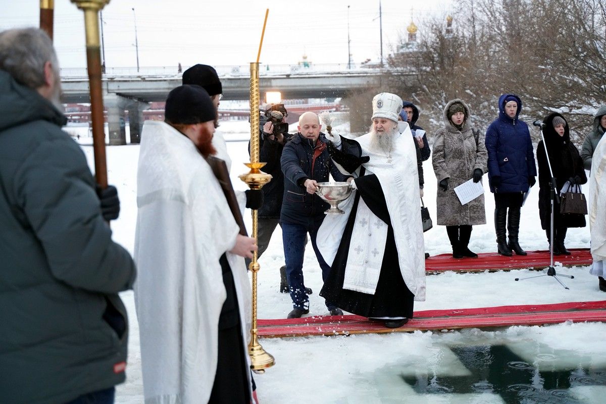 Праздник начался с ранней Литургии, продолжился крестным ходом и освящением «Иордани». Чин Великого освящения воды совершил настоятель Вознесенского собора г. Йошкар-Ола протоиерей Евгений Кутырев. Для многих это был очень волнительный и торжественный момент.
