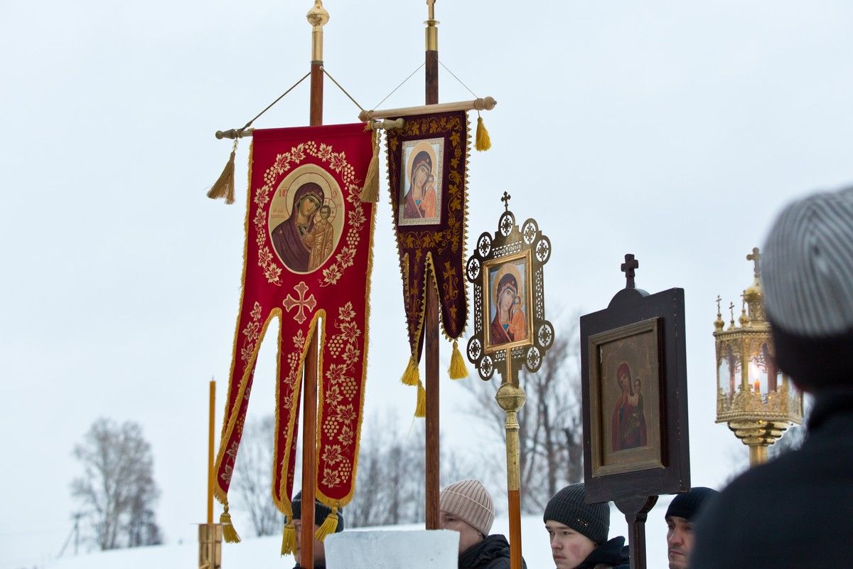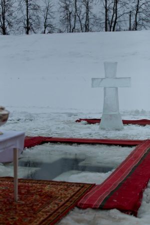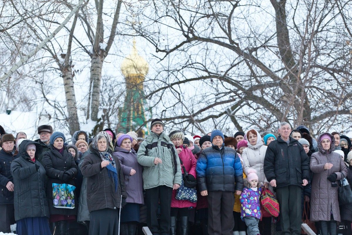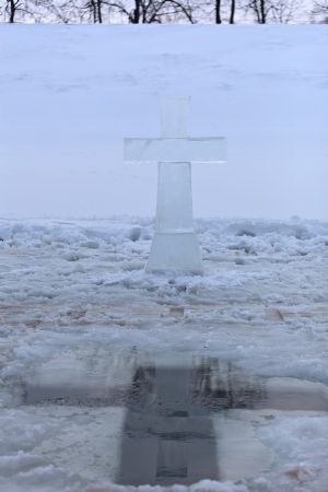 Судя по скоплению народа, большинство горожан уже, наверное, не представляют этот день без посещения реки Малая Кокшага за Вознесенским собором, именно здесь вырублена крещенская купель и установлен ледяной крест.