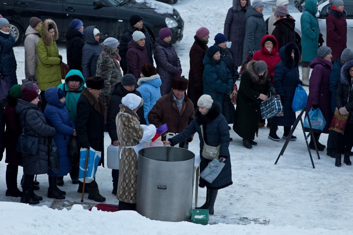 Богослужение закончилось, а желающих набрать святой воды все увеличивалось. Значит, почитаются в народе праздники и живы традиции.