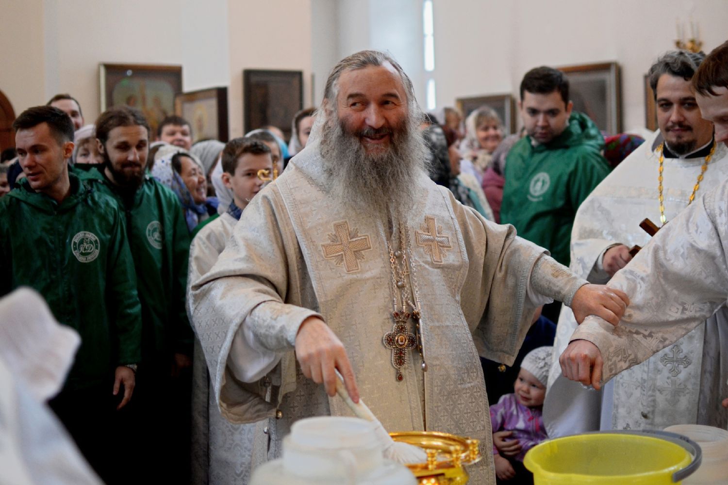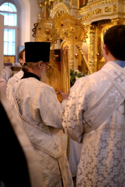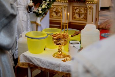 После Божественной литургии митрополит Иоанн с сослужащим духовенством совершил таинство Великого освящения воды и окропил молящихся святой водой.