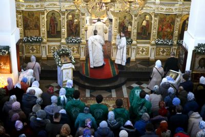 Правый придел Христорождественского храма освещен в честь праздника Крещения Господня. В честь престольного праздника владыка митрополит 18 января возглавил в этом храме Всенощное бдение, а 19 января – Божественную литургию и чин Великого освящения воды.