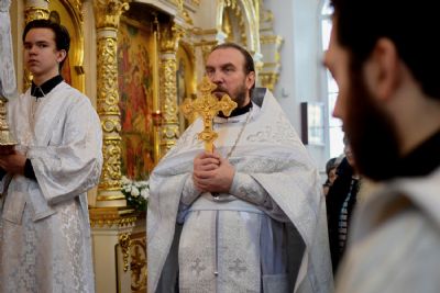 За богослужением песнопения исполняли два хора: хор храма и младший хор учащихся воскресной школы.