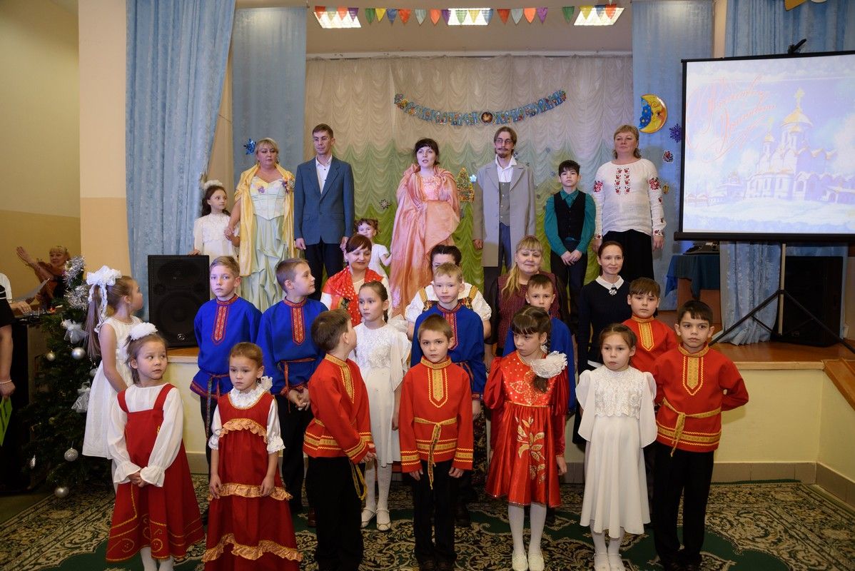 Рождественский спектакль был разыгран по мотивам рассказов русских писателей «Рождественская девочка». Эта трогательная история бедной девочки глубоко взволновала сердца зрителей. Юные актеры – воспитанники центра, играли свои роли на сцене рядом с настоящими мастерами. Вот уже несколько лет участвуют в Рождественских и Пасхальных постановках артист Русского драматического театра им. Г. Константинова Антон Типикин, специалист по культурно-досуговой деятельности районного Дома Культуры п. Оршанка Андрей Михеев.