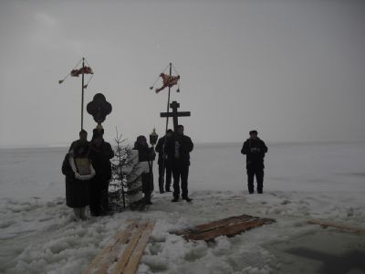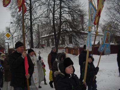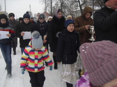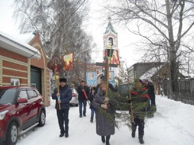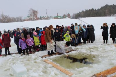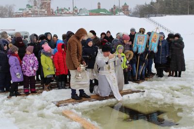 После окропления и благословения всех присутствующих святой водой протоиерей Николай возглавил крестный ход на Волгу к «Иордани». С непрестанным пением праздничных молитв крестный ход остановился перед «Иорданью», где отец Николай совершил чин Великого освящения воды. После освящения прихожане умывались, а желающие окунались в освященных водах.