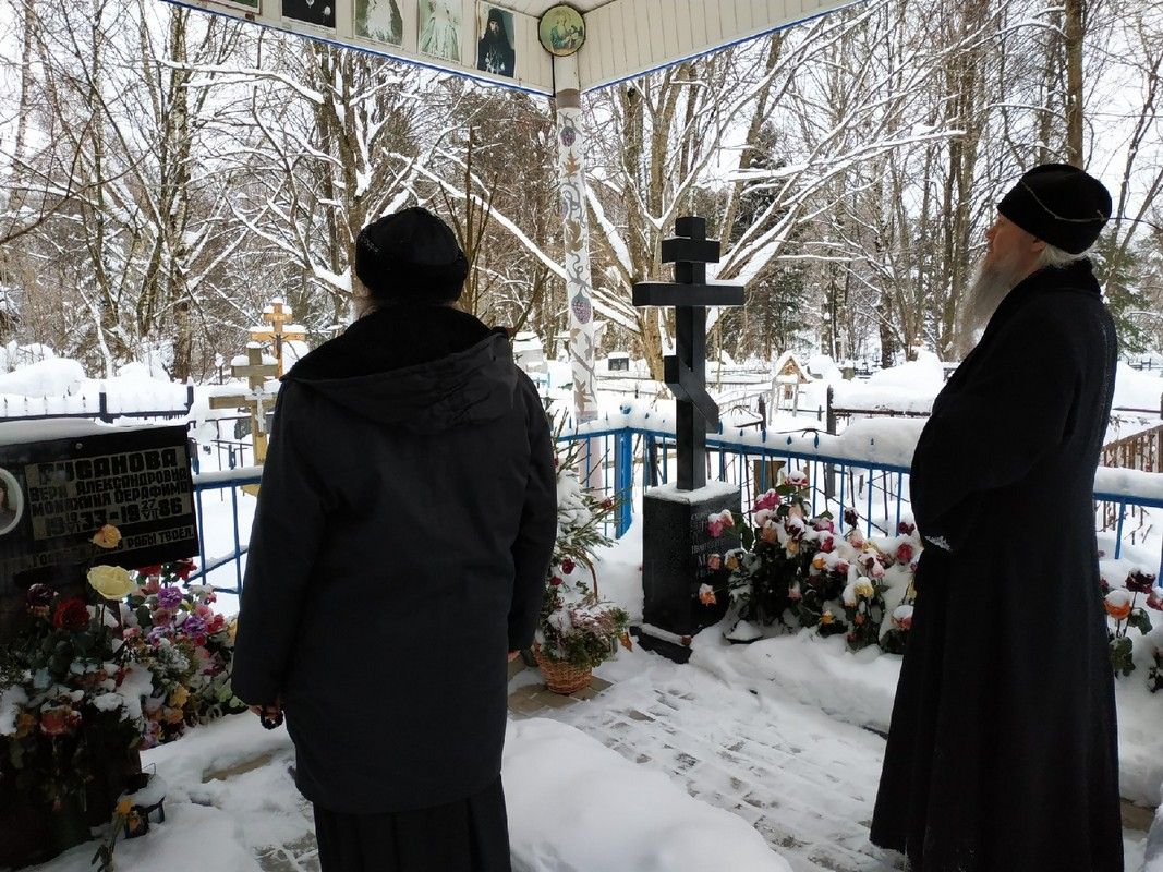 Затем епископ Феофан в сопровождении игумена Евстафия (Солнцева), насельника Свято-Троицкой Сергиевой Лавры посетил городское кладбище, где у могилы схиархимандрита Иоанна Маслова совершил заупокойную литию. "Быть свечой горящей, чтобы хоть кто-нибудь мог погреться у нее...", - такое наставление давал своим духовным чадам схиархимандрит Иоанн. Эти слова сам батюшка, выдающийся богослов XX столетия, опытный духовник и старец Троице-Сергиевой Лавры, воплотил всей своей жизнью.