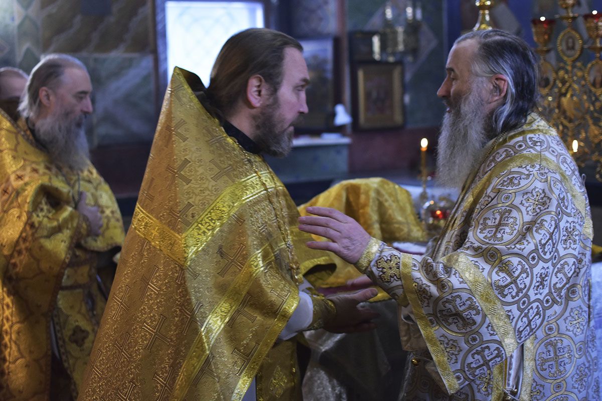 За Литургией возносились особые молитвы о умирении брани в Украине и о единении Православной Церкви. Читались отрывки из послания апостола Павла апостолу Тимофею (3 глава 2-го послания) о тяготах апостольского служения и из Евангелия от Луки (18 глава) притча о мытаре и фарисее.