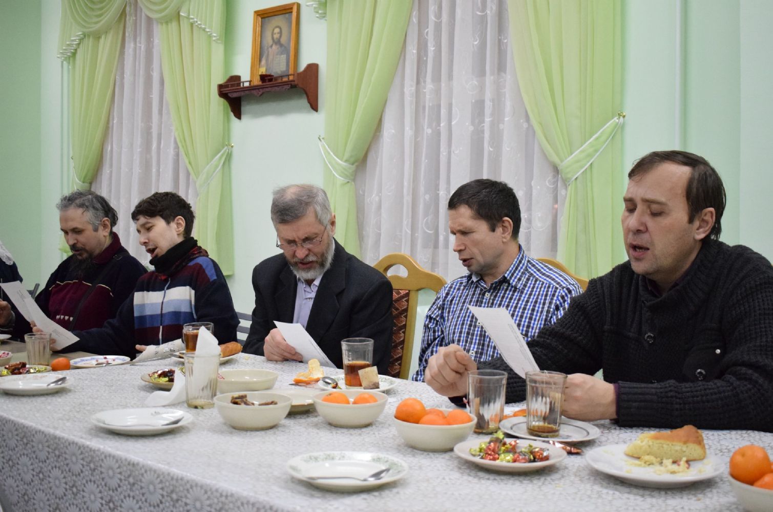 По традиции, ежегодно в день памяти священномученика Адриана курсанты собираются в Православном центре, чтобы помолиться своему небесному покровителю, попросить помощи в учебе и работе, узнать что-то новое из его жития. Праздник начался с молебна святому Адриану Троицкому, который отслужил руководитель Православных образовательных курсов иерей Александр Козлов. Впервые за богослужением пел сводный хор курсантов под руководством регента Елены Ивановой. По окончании молебна отец Александр обратился к собравшимся с напутственным словом, пожелав всем избегать зла, избегать греха и стараться жить по Божией Правде. Наша жизнь так скоротечна, и надо успеть накопить духовное сокровище – напитаться Словом Божиим и послужить Ему в добрых делах. И здесь хорошо брать пример с таких святых, как Адриан Троицкий, который был пламенным проповедником и миссионером, добрым и заботливым пастырем и, конечно, несгибаемым воином Христовым, верным Ему до конца.