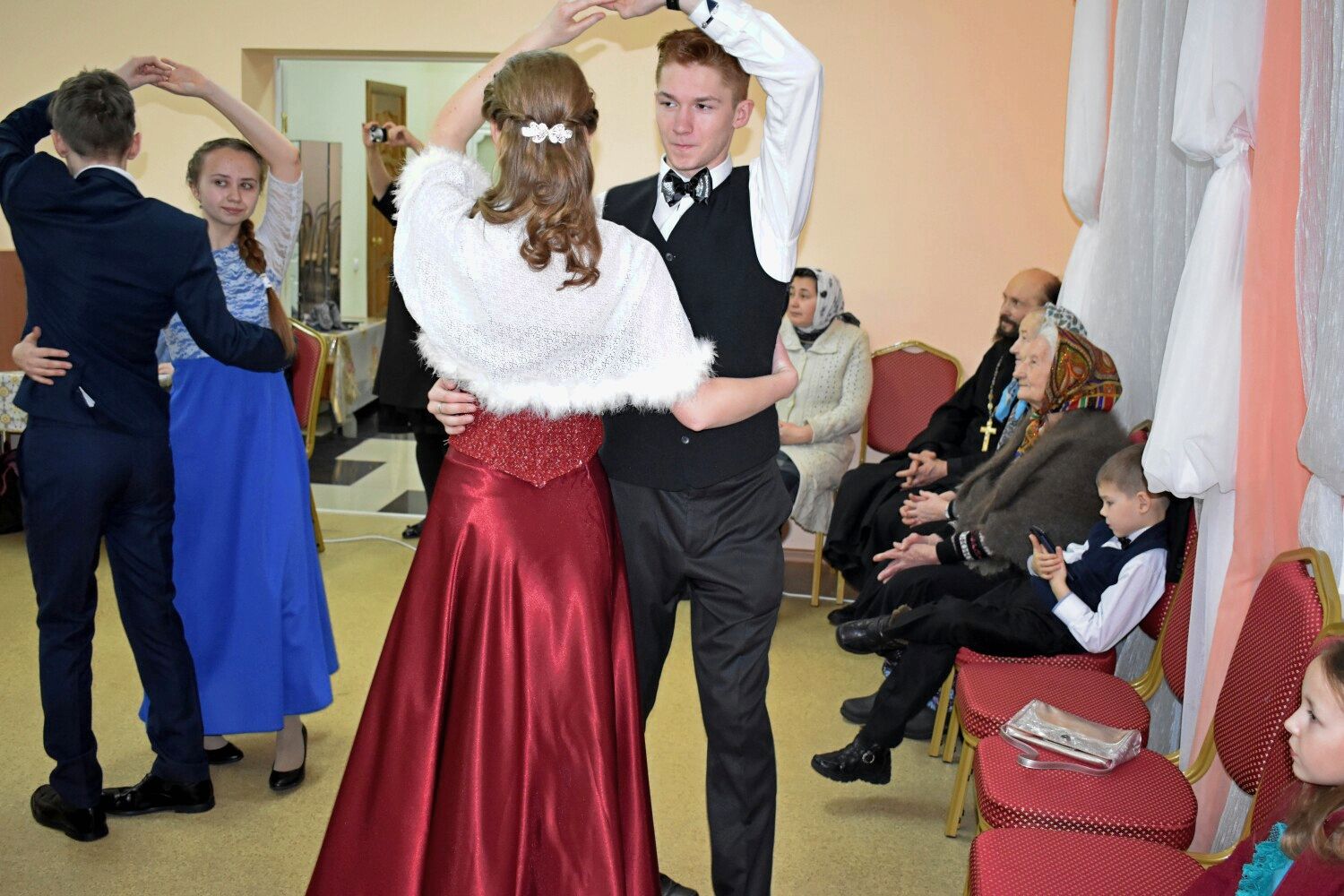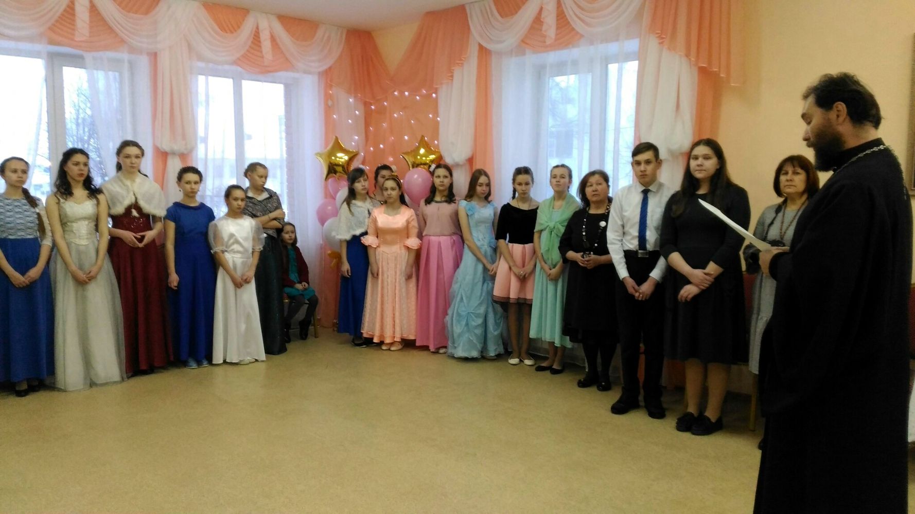 В этом году это случилось в воскресенье 17 февраля. Каждую зиму, Протоиерей Владимир, благочинный Северного благочиния, благословляет торжество и знаменует начало новых преобразований в душе каждого человека. Под музыку Полонеза в просторный зал вступают пары, возвещая о начале бала. С приветственными словами к участникам бала обратился настоятель храма Ахристратига Божия Михаила п. Сернур протоиерей Владимир Власов.