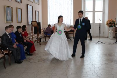 Вальс сменил – регтайм. За регтаймом – полька. Свою главную задачу – танцевать участники бала выполнили с успехом! В перерывах между танцами звучат песни в исполнении певцов районного Дома культуры О. Дружининой и С. Зарубиной.