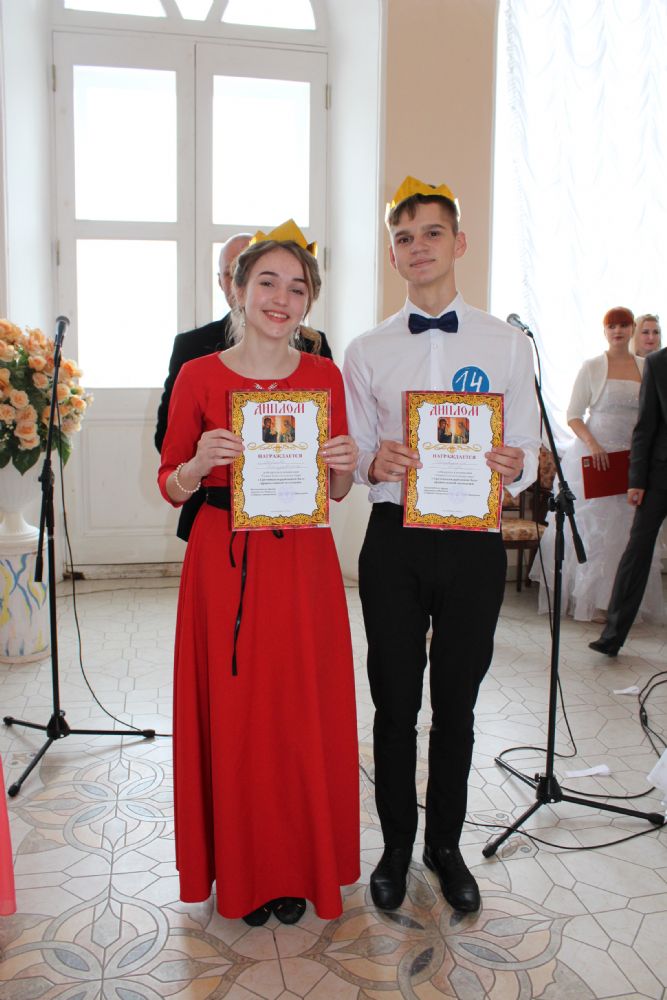 В номинации «Самая блистательная пара» - Дружинин Егор, Рябцева Елизавета. (Хозяин и хозяйка будущего бала) Марьинская школа.