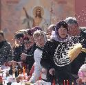 По традиции на Пасху в храмах происходит освящение куличей, пасок и крашенных пасхальных яиц. Эта традиция связана с благодарением Бога за Его щедрые благодеяния.