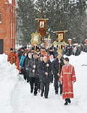 7 февраля, в день памяти Собора новомучеников и исповедников Церкви Русской, Его Высокопреосвященство Архиепископ Йошкар-Олинский и Марийский Иоанн возглавил Божественную литургию в храме в честь Иконы Божией Матери «Державная» п. Медведево.