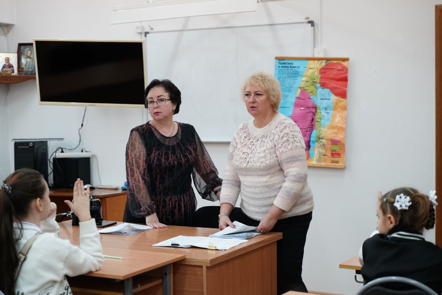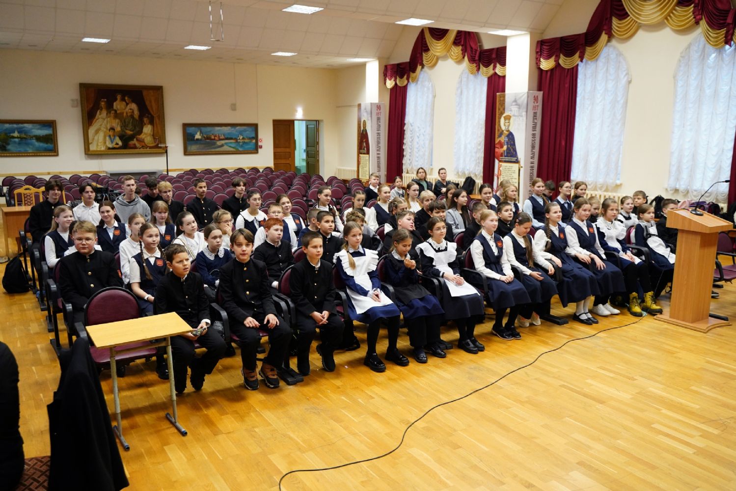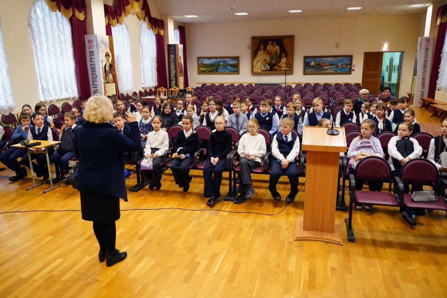 С приветственным словом к участникам олимпиады обратилась сотрудник отдела религиозного образования и катехизации епархии и Йошкар-Олинского благочиния Виктория Яковлевна Сарынина, постоянный член жюри Олимпиады, которая поздравила ребят с успешным прохождением школьного тура и возможностью принять участие в муниципальном этапе. Она вкратце познакомила ребят с историей проведения такой олимпиады для школьников, которую с 2008 года начал проводить Православный Свято-Тихоновский гуманитарный университет, а также сообщила, какие темы определил Центральный оргкомитет олимпиады.