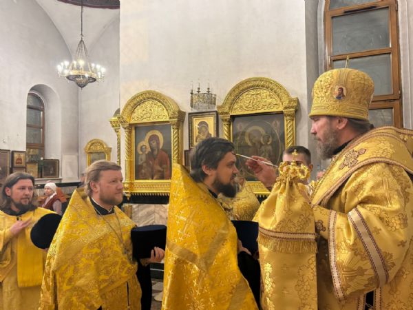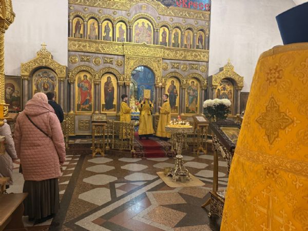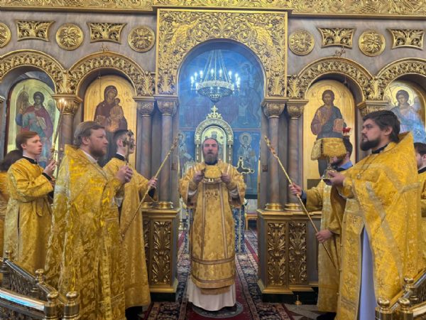Его Преосвященству сослужили настоятель храма протоиерей Сергий Филонов, клирики храма иерей Никита Иванов, иерей Вячеслав Булычев и диакон Александр Мельников. Песнопения исполнял хор храма под управлением регента Ольги Акилбаевой.