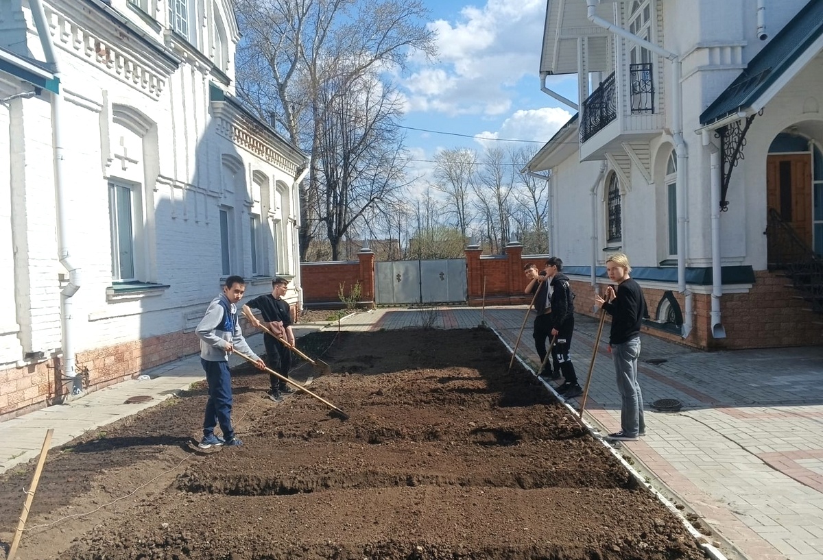 На Светлой седмице в рамках весенней недели добра студенты нескольких учебных групп Марийского радиомеханического техникума приняли участие в облагораживании территории Вознесенского собора.