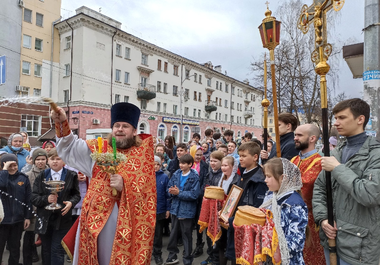 В ночь на 24 апреля епископ Волжский и Сернурский Феофан возглавил в Никольском кафедральном соборе пасхальные богослужения — полунощницу, крестный ход, Пасхальную заутреню и Божественную литургию.