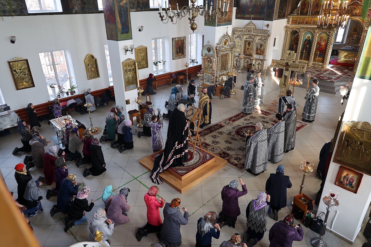 11 апреля епископ Волжский и Сернурский Феофан совершил таинство Соборования в Никольском кафедральном соборе г. Волжска в сослужении духовенства собора.