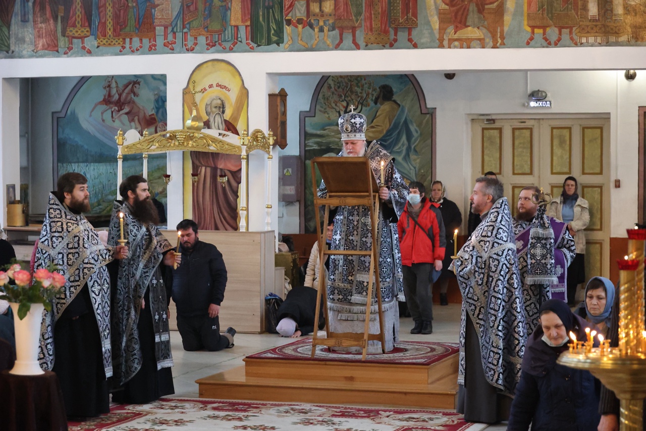 4 апреля вечером епископ Волжский и Сернурский Феофан совершил утреню с чтением покаянного канона преподобного Андрея Критского и жития преподобной Марии Египетской в Никольском соборе г. Волжска.