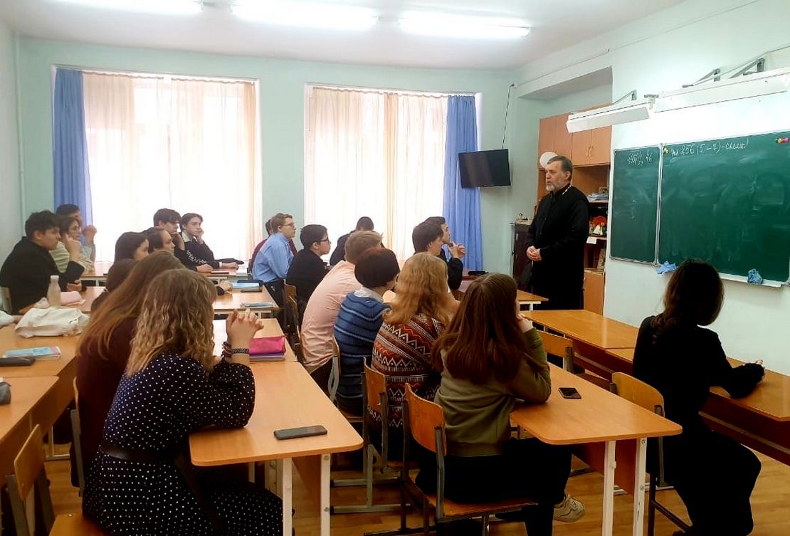 В рамках всероссийской акции «Призывник» в гимназии преподобного Сергия Радонежского г. Йошкар-Олы прошла встреча старшеклассников с полковым священником иереем Георгием Колотовым.