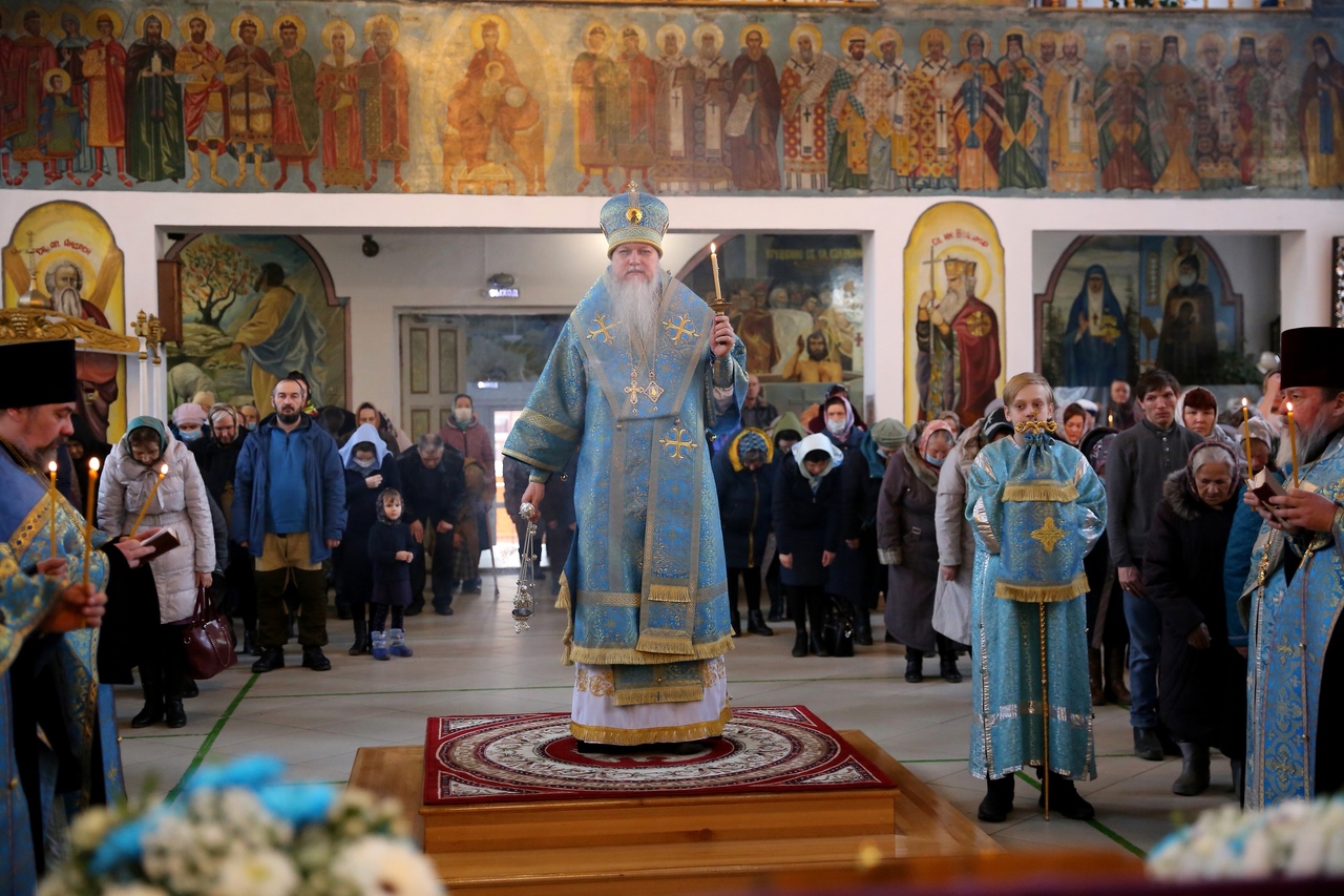 В праздник Благовещения Пресвятой Богородицы, епископ Волжский и Сернурский Феофан возглавил всенощное бдение и Божественную литургию в Никольском кафедральном соборе.