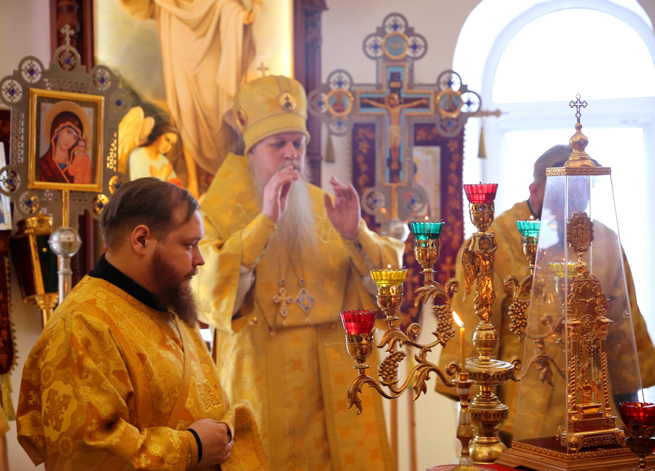 7 февраля митрополит Иоанн совершил Литургию в храме иконы Божией Матери «Державная» п. Медведево. Накануне Владыка возглавил всенощное бдение в Воскресенском соборе.