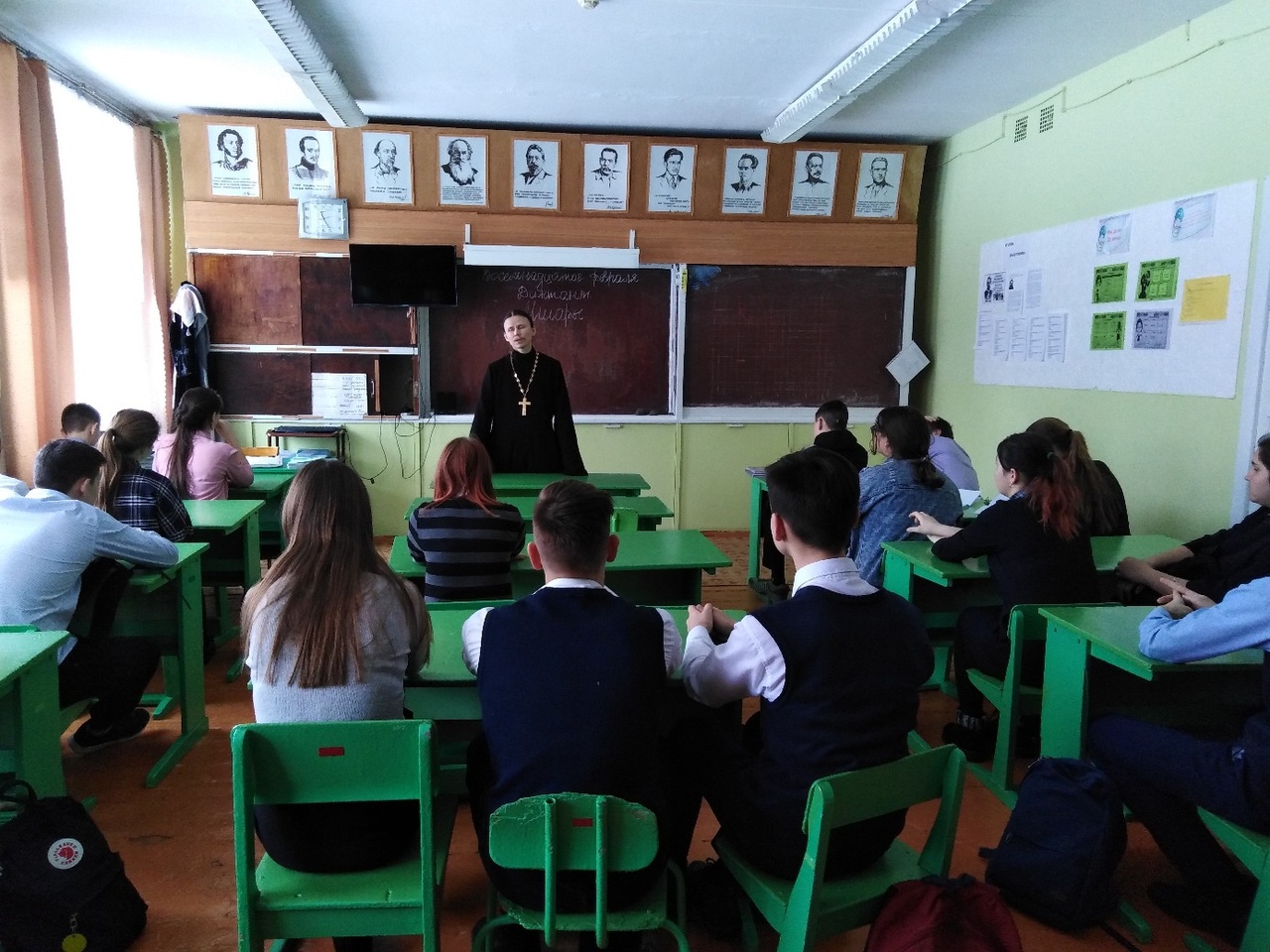 В рамках празднования Дня православной молодежи прошел ряд встреч учащихся Кузнецовской средней школы с настоятелем храма Владимирской иконы Пресвятой Богородицы с. Кузнецово иереем Василием Яшмолкиным.