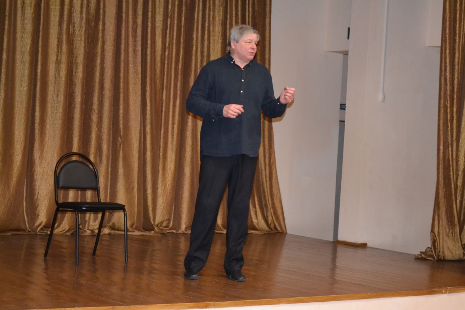 Признанный лидер труппы и ведущий актер Московского драматического театра на Перовской В.А. Никитин уже более десяти лет радует жителей района литературными концертами. 28 февраля Виктор Андреевич в очередной раз выступил в Килемарах.