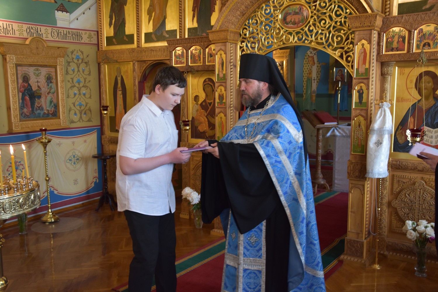 26 июня в домовом храме иконы Божией Матери "Троеручица" секретарь Йошар-Олинского епархиального управления иеромонах Серафим (Пасанаев) возглавил благодарственный молебен по случаю окончания учебы.